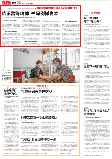 3月5日是学雷锋纪念日,也是第21个中国青年志愿者服务日。在这个特殊的日子里,在做好统筹推进疫情防控和经济社会发展各项工作中,一个个年轻的身影挺身而出、冲锋在前,在天山南北书写着别样的青春。