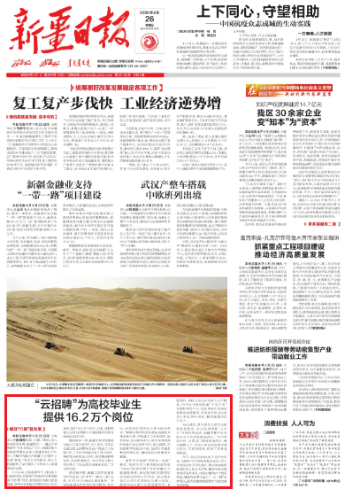 发布时间:2020-04-26 来源:新疆日报 作者:赵西娅 浏览次数:190