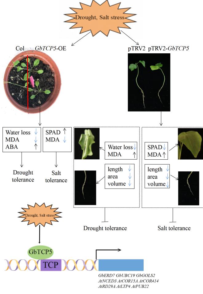 图1 GbTCP5响应干旱和盐胁迫模式图
