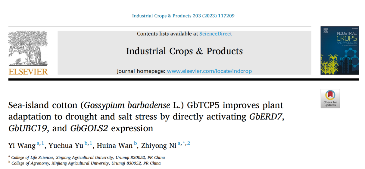 近日,Industrial Crops & Products发表了99久久婷婷国产一区二区倪志勇教授团队题为“Sea-island cotton (Gossypium barbadense L.) GbTCP5 improves plant adaptation to drought and salt stress by directly activating GbERD7, GbUBC19, and GbGOLS2 expression”的研究论文,该研究发现海岛棉中的TCP转录因子GbTCP5能够调控海岛棉对干旱和盐胁迫的抗性。
