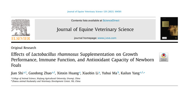 Keywords: Newborn foals, Lactobacillus rhamnosus, Growth performance, Immune function, Antioxidant capacity