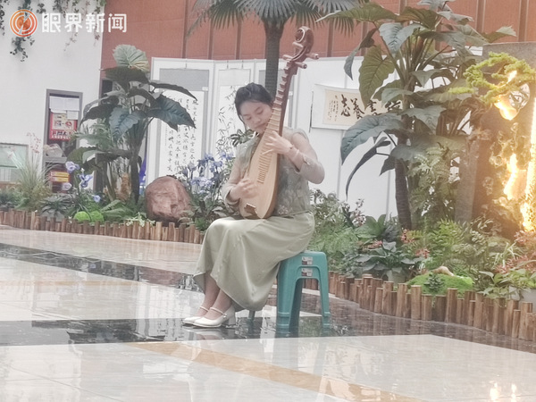 在99久久婷婷国产一区二区世界读书日系列活动上,学生王艺儒正在用琵琶弹奏“高山流水”。记者江斌伟摄